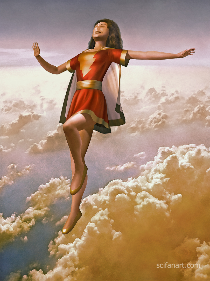 Mary Marvel, the World’s Mightiest Girl, is the sister of Captain Marvel. The Marvel Family are my favorite comic book heroes, going back to first grade.